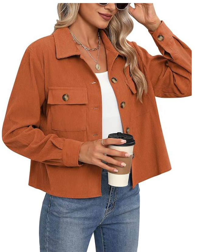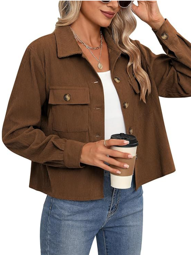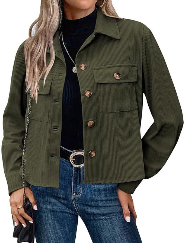 Diese modische Cord-Hemdjacke, auch Shacket genannt, ist ein Must-have für Ihre Übergangsgarderobe. Das weiche Cord-Gewebe und die klare, kurze Passform in Khaki wirken zeitlos elegant. Gefertigt aus robustem Polyester, ist sie ideal für den Lagen-Look. Kombinieren Sie sie offen über einem Rollkragenpullover oder geschlossen zu Jeans für einen schicken, unkomplizierten Stil.